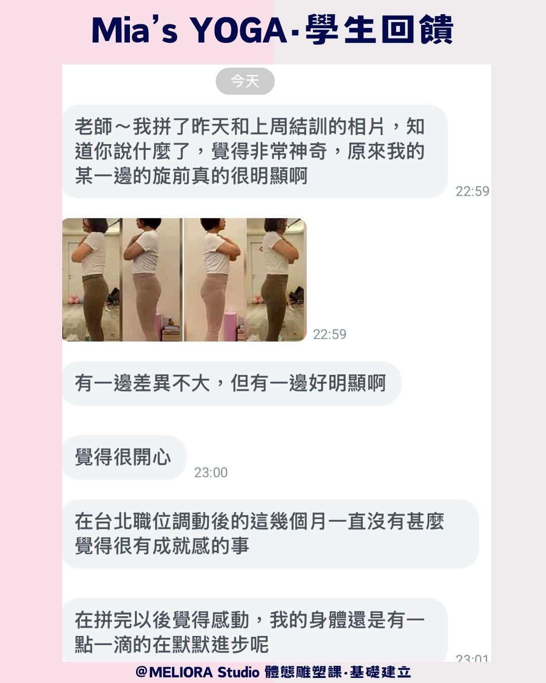 過去的我,把成就感放在拍攝漂亮的瑜珈照、倒立照等等;而現在,我的成就感來自學生們的對比照