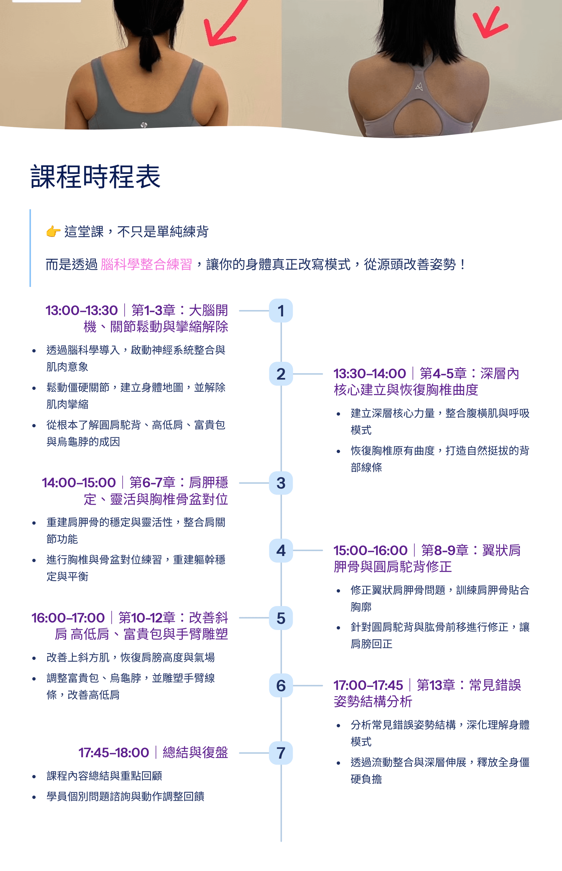 至今,我已幫助超過100+ 位學員,從上半身的肩背到下半身的臀腿,從內而外完成了體態的改變。