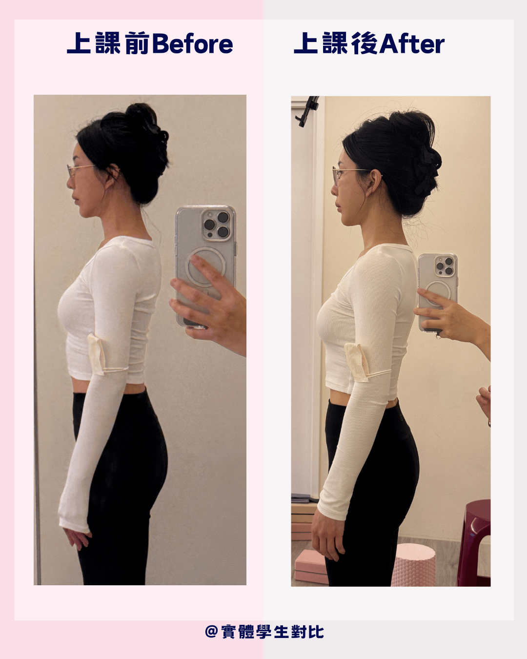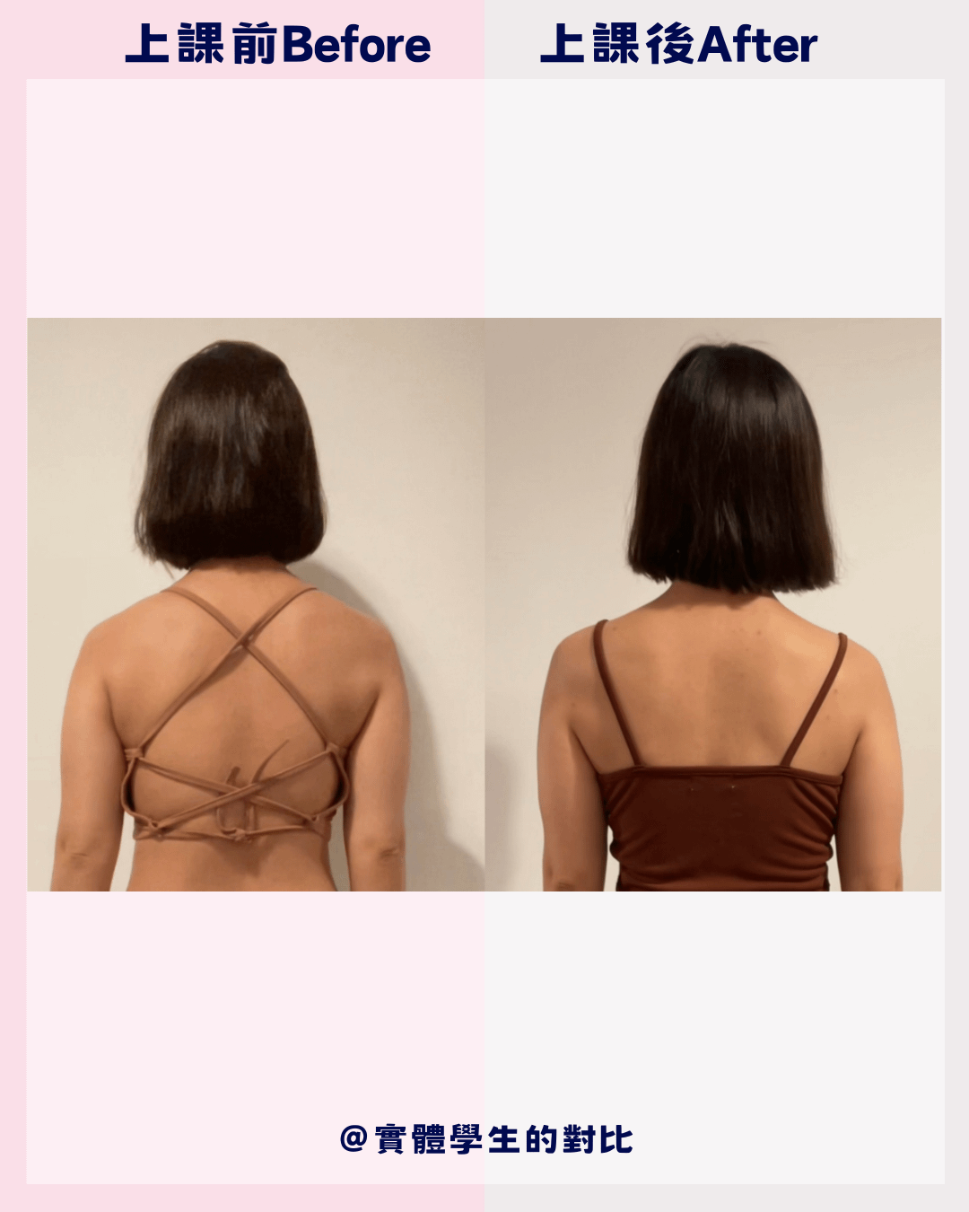 過去的我,把成就感放在拍攝漂亮的瑜珈照、倒立照等等;而現在,我的成就感來自學生們的對比照