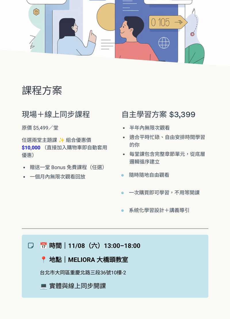 *任選兩堂主題課程(原價$5499/1堂)✨